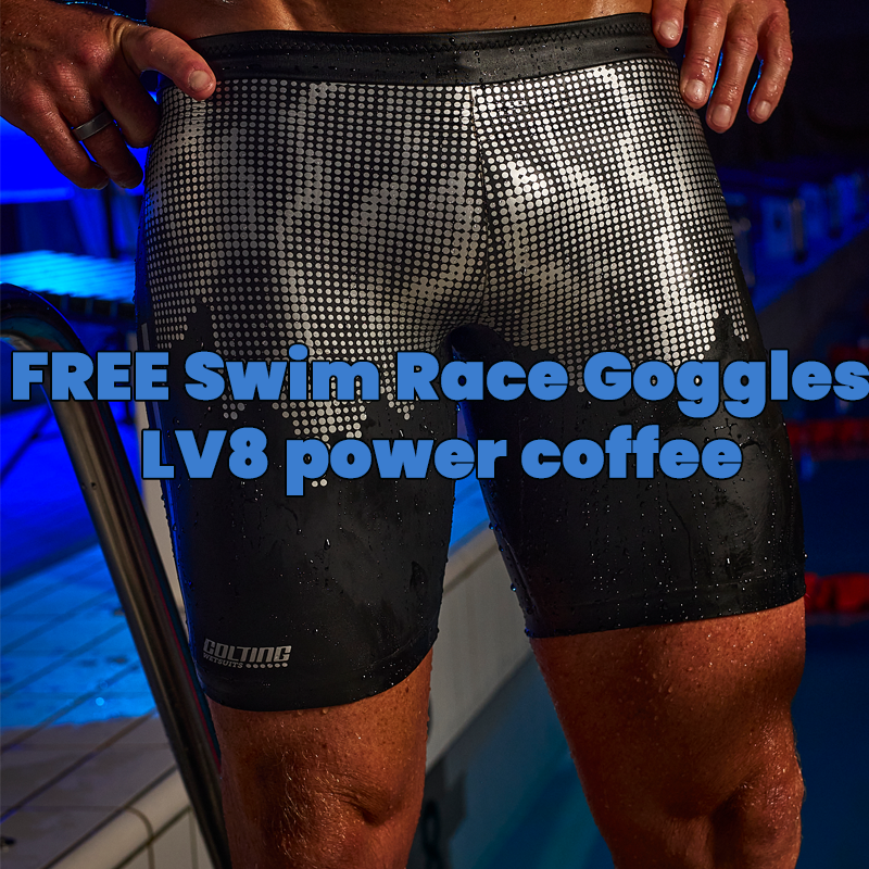 Limited-time campaign during October. When you purchase the Swimpants SP02, you’ll receive a pair of Colting Race Goggles in Smokey Grey and one box of LV8 Power Coffee for free.