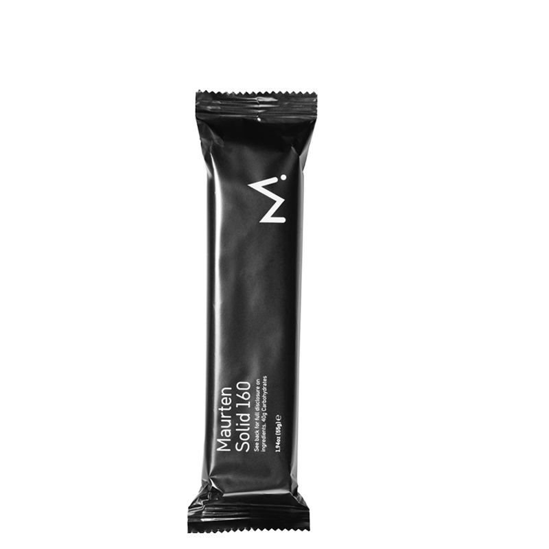 Maurten Solid 160 är en havre- och risbaserad bar med 40 gram kolhydrater – ett tuggvänligt bränsle som ger en välbehövlig texturvariation under träning. Perfekt som energipåfyllning före aktivitet eller för att återställa kolhydratnivåerna efteråt.